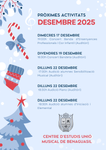 | CALENDARI CURS ESCOLAR 2025/2026 | ACTIVITATS CENTRE D’ESTUDIS DESEMBRE 2025 |